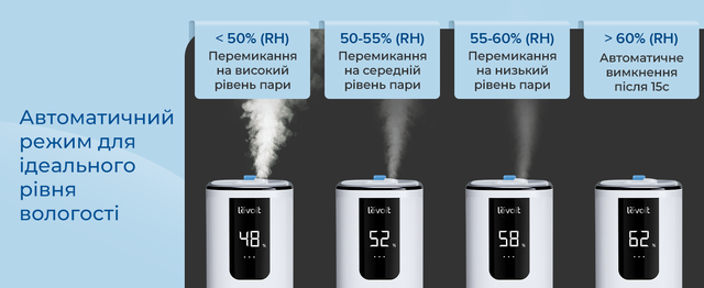 Налаштуйте бажаний рівень вологості в додатку VeSync, і автоматичний режим буде його підтримувати.